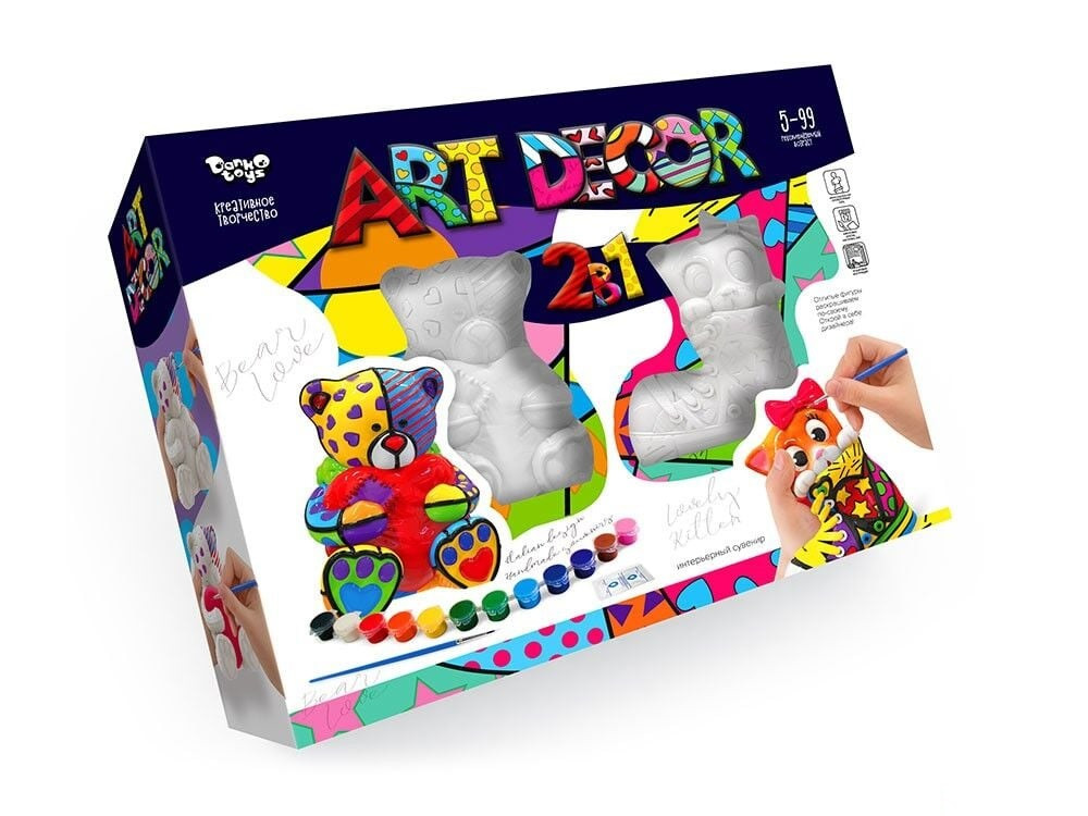 Креативна творчість 2 в 1 ART DECOR, гіпсові фігурки для розфарбовування від ТМ Danko Toys